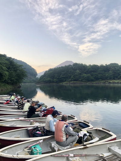 ![]() 2日目 朝の集合 日頃、ボランティアにあたる役員が集まって竿を並べ、三名湖の南に位置する八塩温泉に共に浸かる役員懇親釣会。毎年の楽しみです。参加者は1日目30名、2日目23名。 なお、来年からは更に多くの人が集まれるよう、開催日を「8月の最終土曜日」の一日とします。 終了後、希望者は八塩温泉に宿泊。翌日はゆっくり朝食+温泉も良し、朝から釣るも良しです。 ◆1日目 成績◆ s
