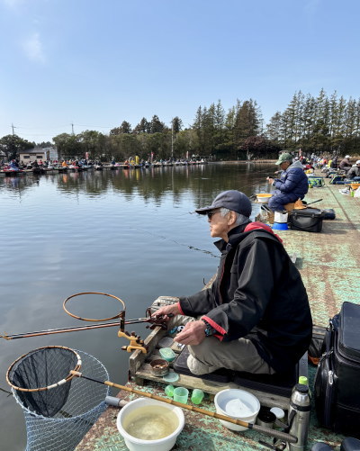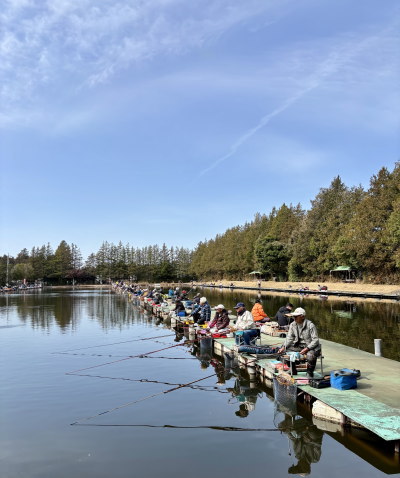 ![]() 今年最初の地区行事、地区懇親釣会を水戸市の南西に位置する友部湯崎湖3号・4号桟橋にて開催。青森、岩手、宮城、福島、山形、新潟、長野、山梨、静岡から93名の会員が集まり、穏やかな春の陽の下、親睦と釣りを楽しみました。 大勢参加くださった分、魚の食いは渋めでしたが…北條東海地区長が見事な釣果で優勝。地区長唯一の農水杯(令和3年)に「地区懇親」の新たな栄誉を加えました。 おめでとうございます。 ◆成績◆ s 優勝 北條 俊介(富士)18.000 3位 松平 昌樹(いわき)13.600 4位 柄沢 郁男(福島一竿)12.600 5位 山本 薫(上越)12.400 6位 平山 雅樹(仙台明星)11.800 7位 三枝 豊(松本美鈴)11.000 8位 斉田 隆一(長岡)10.800 9位 高野 一(富士五湖)10.600 10位 伊藤 毅(新発田)10.500 11位 小原 泰則(宮城阿武隈)9.800 12位 小野澤 誠(長岡)9.200 13位 坂田 裕幸(新発田)9.000 14位 島影 正(新津3H)8.600 15位 浅沼 英夫(山形飛びぬけ)8.400 16位 藤田 恒雄(いわき)7.600 17位 手代森昭彦(三沢木崎野)7.600 18位 伊藤 司(いわき)7.400 19位 山本 一真(静岡静水会)7.400 20位 高田 悟(白河)7.000 21位 太田 雅憲(福島一竿)7.000 22位 梨本 淳(長岡)7.000 23位 佐々木正喜(水沢中央)6.900 24位 坂場 貢一(新発田)6.800 25位 渡辺 一夫(新発田)6.600 26位 高橋 正己(富士)6.600 27位 大竹 修一(白河)6.400 28位 佐々木 孝(秋田雄湯郷)6.200 29位 渡辺 仁(富士五湖)6.200 30位 清水 資郎(宮城阿武隈)6.200 31位 樋浦 孝(新津3H)6.000 32位 金子 順一(富士)6.000 33位 斎藤志津夫(福島一竿)6.000 34位 長澤 竜治(福島一竿)6.000 35位 佐藤 峰男(水沢中央)6.000 36位 太田 斉(山形飛びぬけ)5.800 37位 名古屋光男(個人)5.800 38位 斉藤 剛(福島一竿)5.800 39位 綿貫 千晃(長野中央)5.600 40位 太田 隆一(仙台まこも)5.600 41位 毛利 次雄(松本葵)5.200 42位 伊藤 誠(郡山中央)5.200 43位 小山 一郎(上越)5.000 44位 荒川 純一(北上展勝)4.800 45位 中野 貴行(新潟大野)4.800 46位 三瓶 秀昭(福島一竿)4.800 47位 石川 博巳(岩手盛岡)4.800 48位 長倉 春彦(福島一竿)4.600 49位 石合 定則(甲斐)4.600 50位 岩渕 武(水沢中央)4.600 51位 塩田 義源(郡山中央)4.400 52位 工藤 勇雄(山形飛びぬけ)4.400 53位 土橋 勝典(新発田)4.000 54位 大友 弘(宮城阿武隈)4.000 55位 本多 博(白河)4.000 56位 生田目博之(郡山中央)3.800 57位 中沢 栄一(新津3H)3.800 58位 渡辺 良次(富士五湖)3.700 59位 丸山 直(個人)3.600 60位 浪岡 岩男(三沢木崎野)3.600 61位 渡邉 智久(いわき)3.600 62位 伊藤 誠(いわき)3.400 63位 太田 誠(福島一竿)3.400 64位 中岫 伸吾(宮城阿武隈)3.400 65位 遠藤 和彦(郡山中央)3.200 66位 渡辺 昭(山形飛びぬけ)3.200 67位 伊藤 勝男(北上展勝)3.200 68位 数野 順久(甲斐)3.200 69位 渡辺 長司(白河)3.200 70位 船田多美雄(仙台明星)3.000 71位 葛籠貫 彰(甲斐)3.000 72位 佐藤 森(郡山中央)3.000 73位 二越 良眞(岩手盛岡)2.800 74位 小野 昌弘(いわき)2.800 75位 赤羽 忠徳(仙台明星)2.800 76位 渡辺 健寿(福島保原)2.800 77位 半田 寿(岩手盛岡)2.600 78位 吉田 辰男(新潟大野)2.600 79位 小池 吉雄(加茂)2.600 80位 松浦 勝信(福島一竿)2.600 81位 中澤 昇司(新津3H)2.200 82位 鈴木 孝一(郡山中央)2.200 83位 渡部 庄一(個人)2.200 84位 蹴揚 敏雄(三沢木崎野)2.200 85位 後藤 正利(山形飛びぬけ)2.200 86位 矢澤 宰(上越)2.000 優勝 北條 俊介(富士) 4号桟橋最奥5号向き。竿13.5尺、バランス底釣り。浮子「Arata」B9p、道糸08号 ハリス03号30p/36p ハリ上下グラン1号。バラケにグルテン。(釣況)入場14番。高野一相談役にアドバイスを頂き入りました。背中合わせで釣りました。ありがとうございます。 3位 松平 昌樹(いわき) 4号桟橋中央5号向き。竿10尺天々の宙。浮子「杉山作」B5p、道糸06号 ハリス06号8p/035号45p ハリ角マルチ8号/サラ3号。バラケ:粒戦1+細粒0.5+水1.5+セット専用1+セットアップ1、食わせ:力玉サナギ漬。(釣況)トップ5目盛出し。バラケの付け方で2〜3目盛馴染ませ、バラケが抜けてから3回誘って当たらなかったら次を打つ。周りが空いていたのが良かったです。 5位 山本 薫(上越) ![]() 賑わう4号桟橋 ![]() 4号桟橋奥の浅場狙い 斉藤 剛(福島一竿) 福島一竿支部は毎年「例会」として参加くださいます。 ![]() 4号桟橋の更に奥、高野 一相談役(富士五湖) ![]() 高野相談役と背中合わせ、名手・原田雄一(静岡静水会) ![]() 二越良眞相談役(岩手盛岡) ![]() 三瓶秀昭(福島一竿) 三瓶は「みかめ」でも「さんべ」でもありません。 「さんぺい」と読みます。 当然「釣りキチ三平」と呼ばれます。 ![]() ゴメンナサイ、お名前を伺うのを忘れました。 広報部・吉本までご連絡ください。 ![]() 吉田辰男相談役(新潟大野) ![]() 精進湖でお世話になります。 金風荘 渡辺良次(富士五湖) ![]() 高田 悟 福島地区長(白河) ![]() この人でも釣れないことがある、藤田恒雄(いわき) ![]() 青森からようこそ! 蹴揚敏雄 青森地区長(三沢木崎野) ![]() 土橋勝典(新発田) ![]() 浅沼英夫 山形地区長(山形飛びぬけ) ![]() 工藤勇雄(山形飛びぬけ) 浅沼、工藤。共に名手。浅沼英夫は平成26年のAOYです。 ![]() この人も名手、三枝 豊(松本美鈴) スイカ作りも名手 ![]() 手前から小原泰則(宮城阿武隈)、綿貫千晃 長野地区長(長野中央) 共にAOYを獲得して