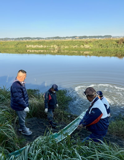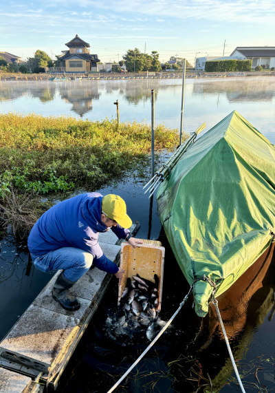 ![]() ▲季節によってはエビも育てている。これは卵を産む親エビ。 大阪府の南、古代の「和泉国(いずみのくに)」を泉州(せんしゅう)と呼ぶ。泉北と泉南に分かれ…泉北は堺、和泉、泉大津。泉南が岸和田、貝塚、泉佐野。其の貝塚こそ、へら鮒の故郷の一つである。同地で曾祖父の代から養魚業を営む、十和正行(そうわまさゆき)さんにお話を伺います。(聞き手:広報部 吉本亜土) 本誌 十和正行!楠木正成の子として生まれ、同じく南朝のため、四条畷で討ち死にした楠木正行(まさつら)と同じ名前ですね。 十和 年寄りから言われます。あちらは河内の盗賊。 本誌 昭和27年生まれの私、確かに年寄りだな。楠木正成が盗賊か土豪か御家人か、今も出自ははっきりしません。物流業者という説さえあります。ところで、お生まれは? 十和 昭和54年、今44歳。 本誌 お若いですね。十和家の後継者というお立場ですが、養魚の仕事は何時ごろ始まったのですか? 十和 明治生まれの曾祖父から。最初は趣味でやっていたようです。 本誌 琵琶湖原産のゲンゴロウブナが、明治末期〜大正初期に改良されてヘラブナが生まれた。ヘラブナ養殖の歴史と重なりますね。 十和 当初は養殖の下請けで、森養魚場さんに納めていました。やがて、祖父の代に十和養魚場として本格的に取り組み、昭和40年代末〜50年代、関東へ出荷を始めて発展したのです。 本誌 へら鮒釣りが伸びた時期。日研ニュースのバックナンバーを見ても、放流量が昭和54年に初めて100トンを超えるなど、右肩上がりです。活況の中、十和さんは子どもの頃からお手伝いを? 十和 幼稚園時代から、遊びがてら池へ行ってました。エサやったり、仕事を手伝ったり。 本誌 どのようなエサを? 十和 当時も今も基本は変わっていません。サナギ粉、魚粉、商品にならなかったビスケットの粉、そして蛋白質である大豆粉の配合エサ。昭和40年代は病院から出た残飯も与えていました。 本誌 残飯! 十和 元は病院食なので栄養たっぷり。へら鮒は雑食性だから何でも食べる。朝病院で引き取り、そのまま池に撒いてました。 ![]() ▲十和養魚場の池。モロコとへら鮒が一緒に暮らしている。何故可能か? 網の目の大きさを変えれば、別々に収穫できるのである。 モロコは3〜4種類に選別のうえ出荷される。 現在は小型の、骨が残らない、子供でも食べやすいモロコの人気が高い。 へら鮒は此処で育った稚魚が他の池へ移されて大きくなる。 本誌 エサを呉れる人に懐いたりしますか? 十和 はい。エサをやる時間に行くと、軽トラの音、私の足音で寄ってくる。けれど、他人の車や人間では寄ってこない。十和正行の気配が分かるようです。 本誌 可愛いですね。ところで、泉州と云えば勇壮活発なイメージがあります。どのような土地柄ですか? 十和 一言で云えば、ガラの悪いところ。言葉もキツイ。私が20代で放流へ行き始めた頃、人と関わる時は兎に角「なめられたらあかん」と思って生きてました。 本誌 緊張して生きるのはシンドイでしょう。 十和 当時は年上の人ばかり。同業者でも仕事相手でも、周りは勇ましい人が多かった。 本誌 今の十和さんからは信じられません。負けん気の上に、紳士の十和正行があるのですね。なにより、泉州と云えば地車(だんじり)が有名。9月半ばになると、東京のTVニュースにも岸和田祭が登場します。賑やかな囃子と共に地車が引きまわされ、其の屋根では団扇を手にした大工方(だいくかた)が跳ね回ってる。人間技とは思えません。 十和 私の住む貝塚も凄い。岸和田は道が広くて見やすいから見物人が集まるけど、貝塚の方が道が狭い分、緊張感と迫力がありますよ。 本誌 なるほど。 十和 ところが其の地車、へら鮒の出荷に影響があります。 本誌 え! 十和 北海道への出荷が地車の季節と重なるのです。 本誌 というと? 十和 へら鮒の出荷のため、池の水を抜く必要があるでしょ。地車は当地で大切な行事で、地車関係者には池の水利関係者も多い。そのため、祭り前に水を抜いてトラブルが生じると面倒なのです。 本誌 なるほど。 十和 9月10月に水を抜ける池は少ない。水を抜かしてくれる池を見つけ、魚を集めておく必要があります。 ![]() ▲十和養魚場の池。育ったへら鮒を此処でキープして出荷する。 本誌 そして、今年も10月8日(日)の北海道地区から放流が始まりました。大変な長距離移動です。是非、其の様子を教えてください。 十和 水槽の数や水槽の大きさは、放流場所によって変わります。今回の北海道は8トン車に載せて行きました。 本誌 どんな手順で進むのですか? 十和 まずは魚のエサ断ち。出荷するセンター池に魚を集め、1カ月間エサを与えず身を引き締め、長距離輸送に耐える筋肉質の身体にします。 本誌 お腹をカラにするだけではないのですね。ところで、放流時は水槽から大きなトイで流しますが、水槽に入れる時は? 十和 網で魚を寄せ、タモで掬い、水槽まで手作業のバケツリレー。 ![]() ▲十和養魚場の倉庫 池を仕切